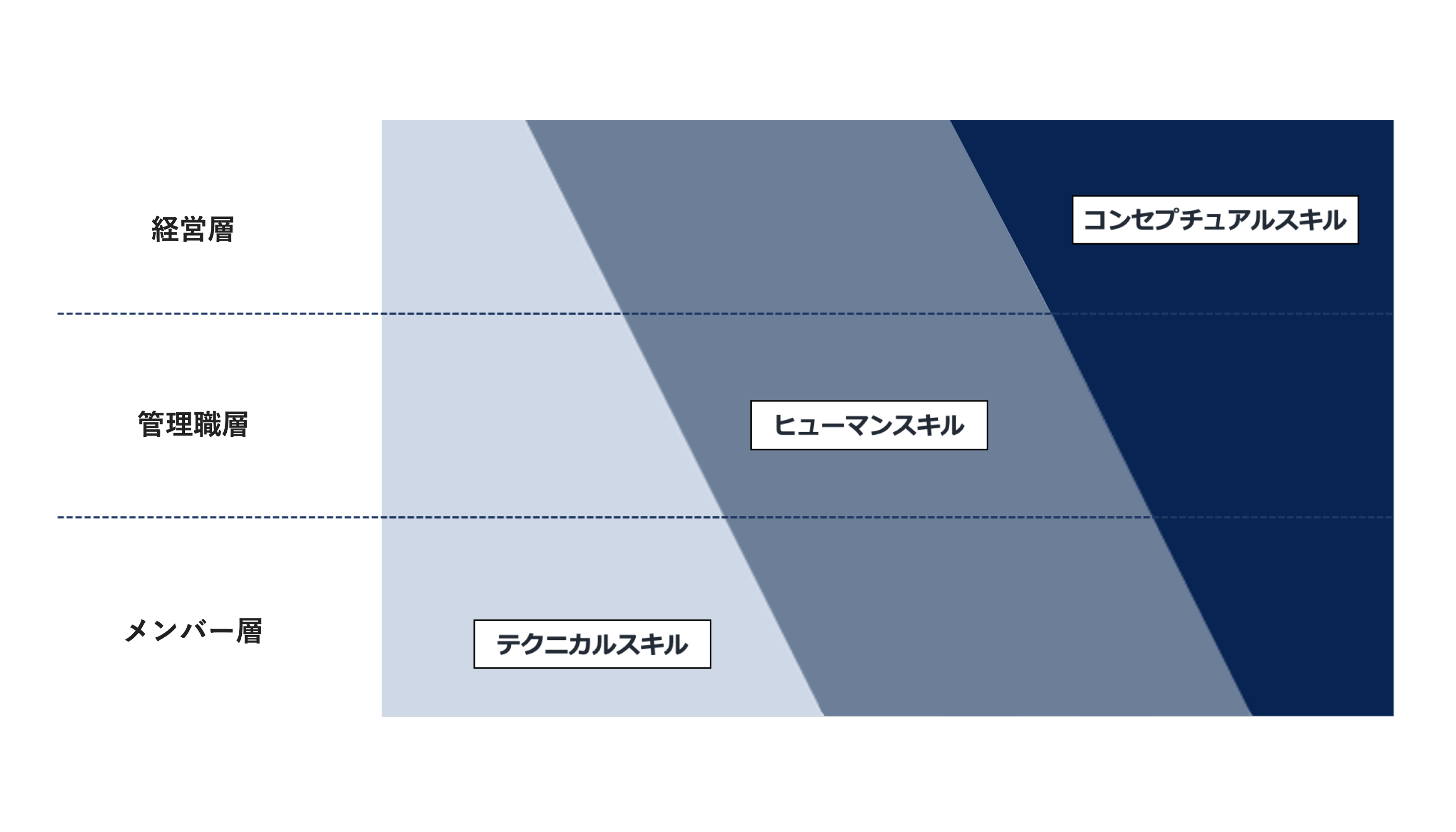 - ・ヒューマンスキルはマネジメントに必要なスキルに注視