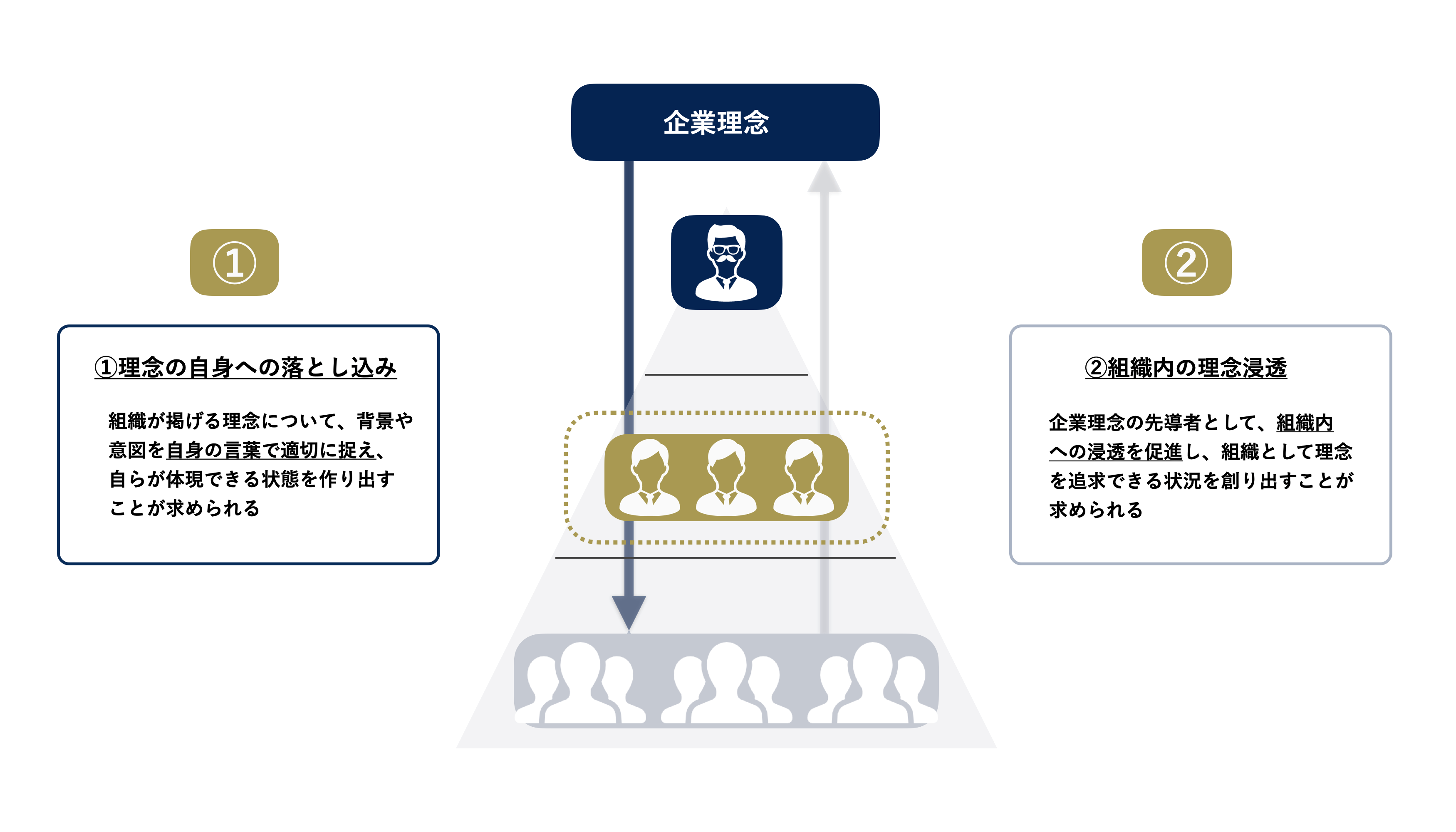 - ・経営層には理念浸透の役目を果たす上で必要な研修の実施