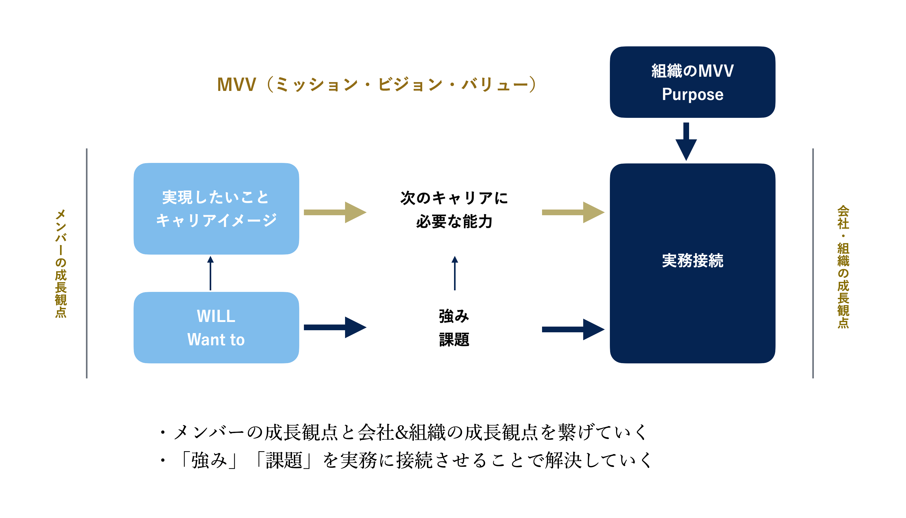 - ・メンバー層には主体性を最大限に発揮する為に必要な研修の実施