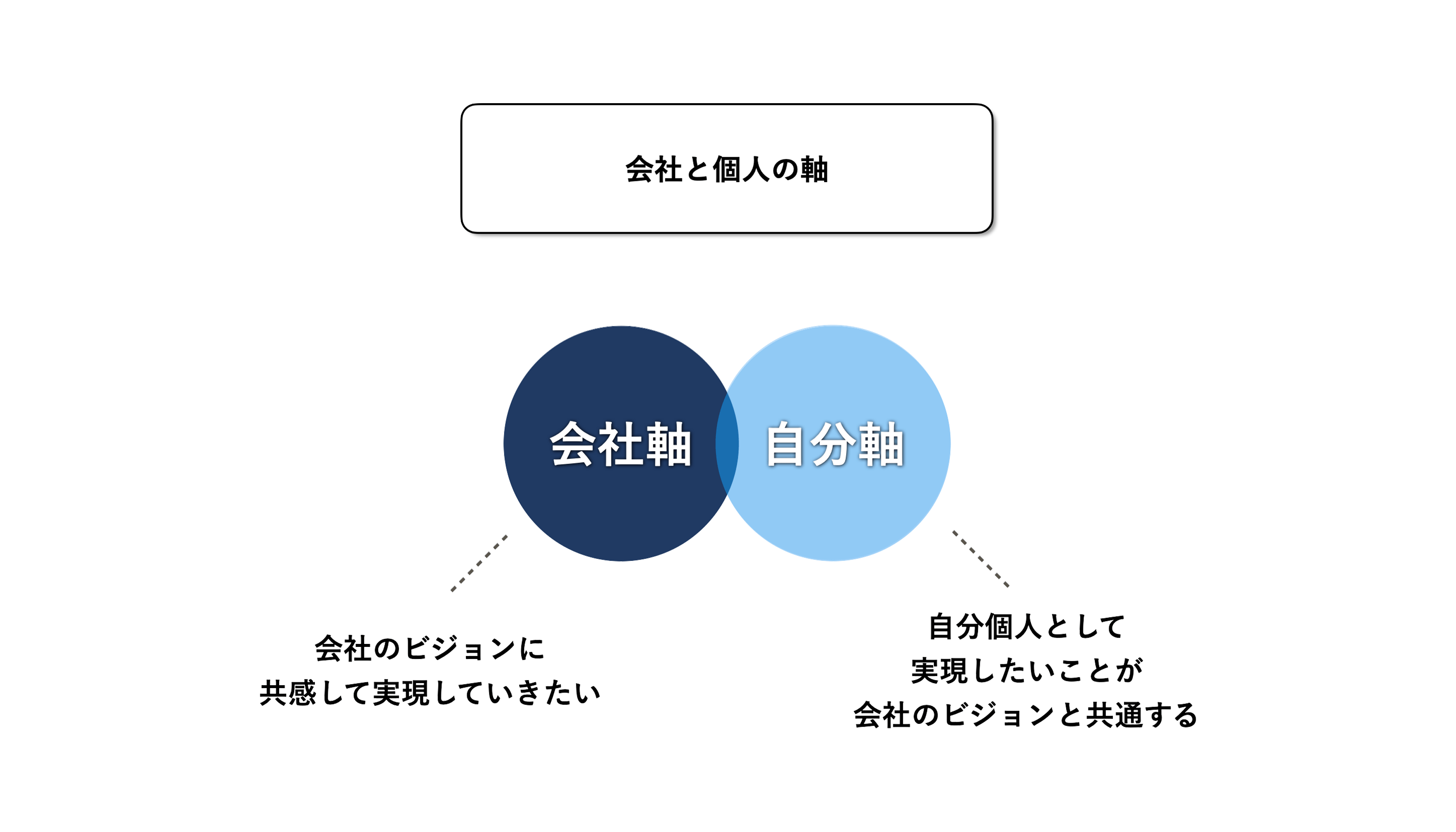 会社軸と自分軸を重ね合わせることと個人のパーパスを明確に設定します。